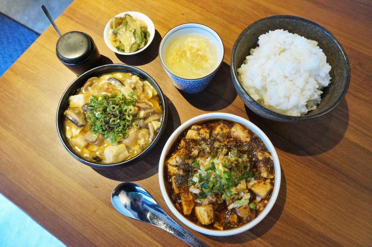 看板メニューの「東京麻婆豆腐」と創作メニューの3種類の中から好きな麻婆豆腐を2種類選べます。