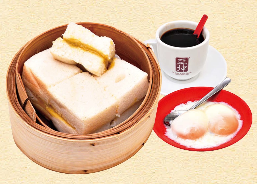 「スチームド・ブレッド・セット(S$4.90)」は、カヤ・ジャムを挟んだフワフワの蒸しパン。(半熟卵と選べるドリンク付き)超定番のトースト以外もチェックしてみてください!
