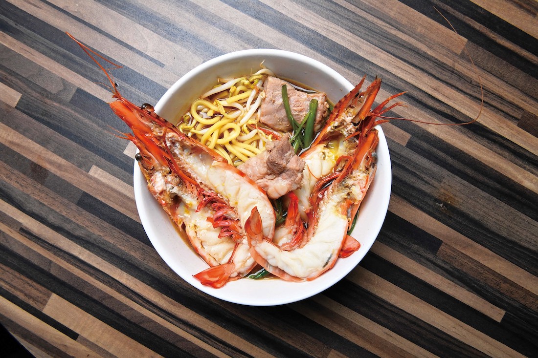 チャイナタウンで創業して30年以上という中国料理店「オールドハウス」のプラウン・ミーも人気です!特に有名なのが、20cm超えの巨大なエビがのる「ダイナソー・プラウン・ミー(S$15)」。骨付豚バラ肉や魚介類などでとったスープは旨みがたっぷりです。