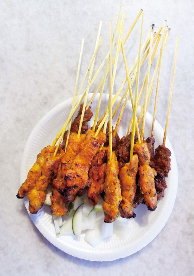 サテ盛合せ(S$10~)は、炭火で香ばしく焼かれていて、ビールのつまみにも最適です!
