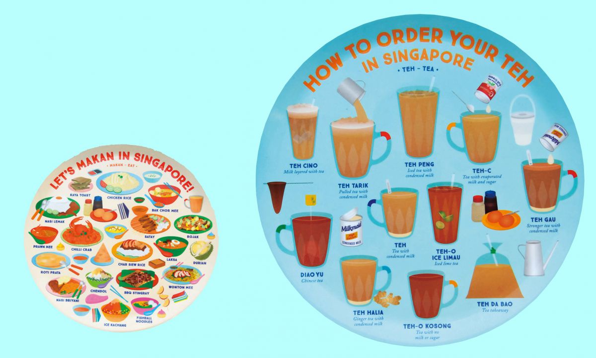 プレート(各S$18.10)は、シンガポールのドリンクや名物料理が大集合した柄が珍しく、インテリアとして飾るのにもぴったりです!