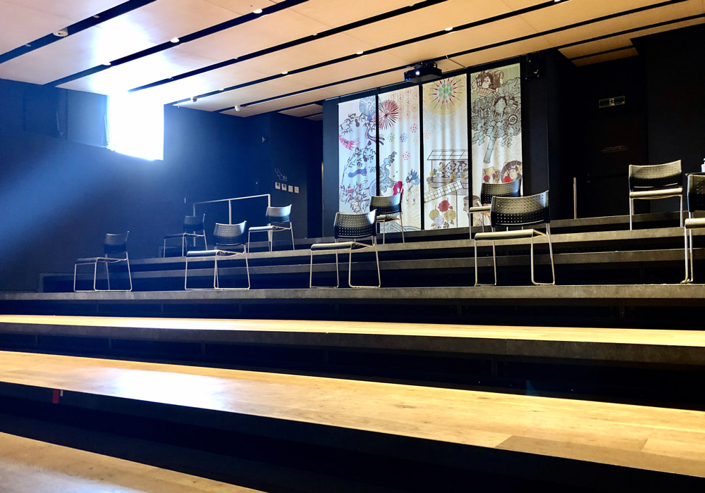 6階には、隈氏が“空中の寄席”をイメージして設計したという多目的スペースが。