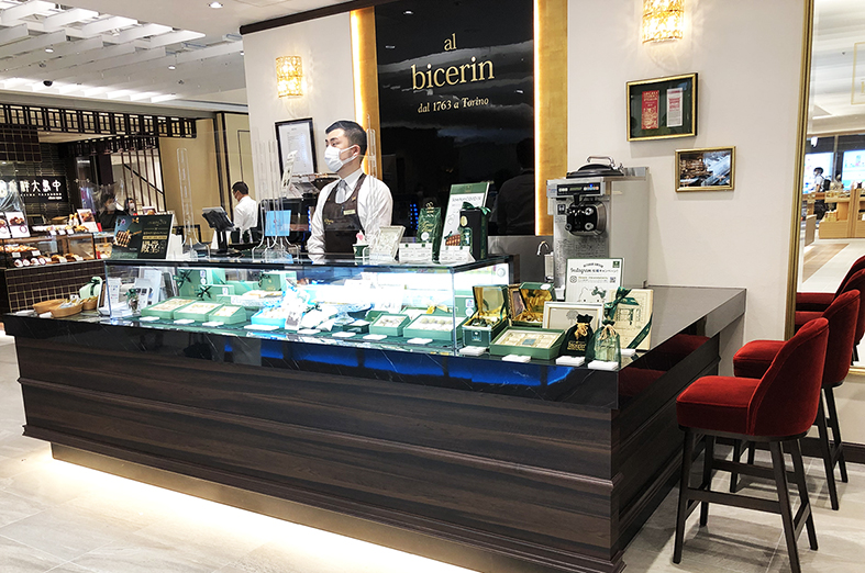 クラシカルなブランドカラーの深緑を基調にした、落ち着いた雰囲気の「Bicerin(ビチェリン)」は、本格的なイタリアの洋菓子やドリンクを味わえることで人気のお店です。