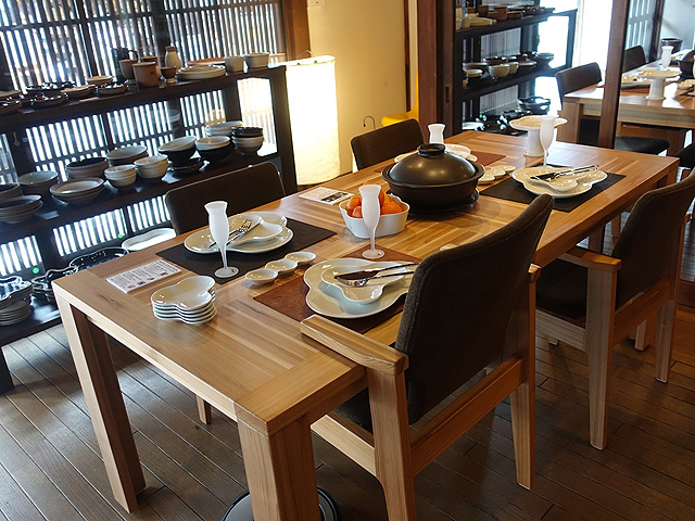 「篠山ギャラリーKITA’S」では、デザイナー喜多俊之氏と、伝統産業を支える職人さんとのコラボから生まれた作品や、さまざまな作家さんの作品を展示しています。リノベーションした古民家の内装も素敵で、器や家具などがセンス良くディスプレイされ、魅力的なアイテムに目移りするばかり。伝統的でありながら、新しい感性や機能性が感じられ、あれもこれもほしくなってしまいます。併設のカフェでは、これらの器でコーヒーをいただけるので、ひと休みするのがおすすめです。