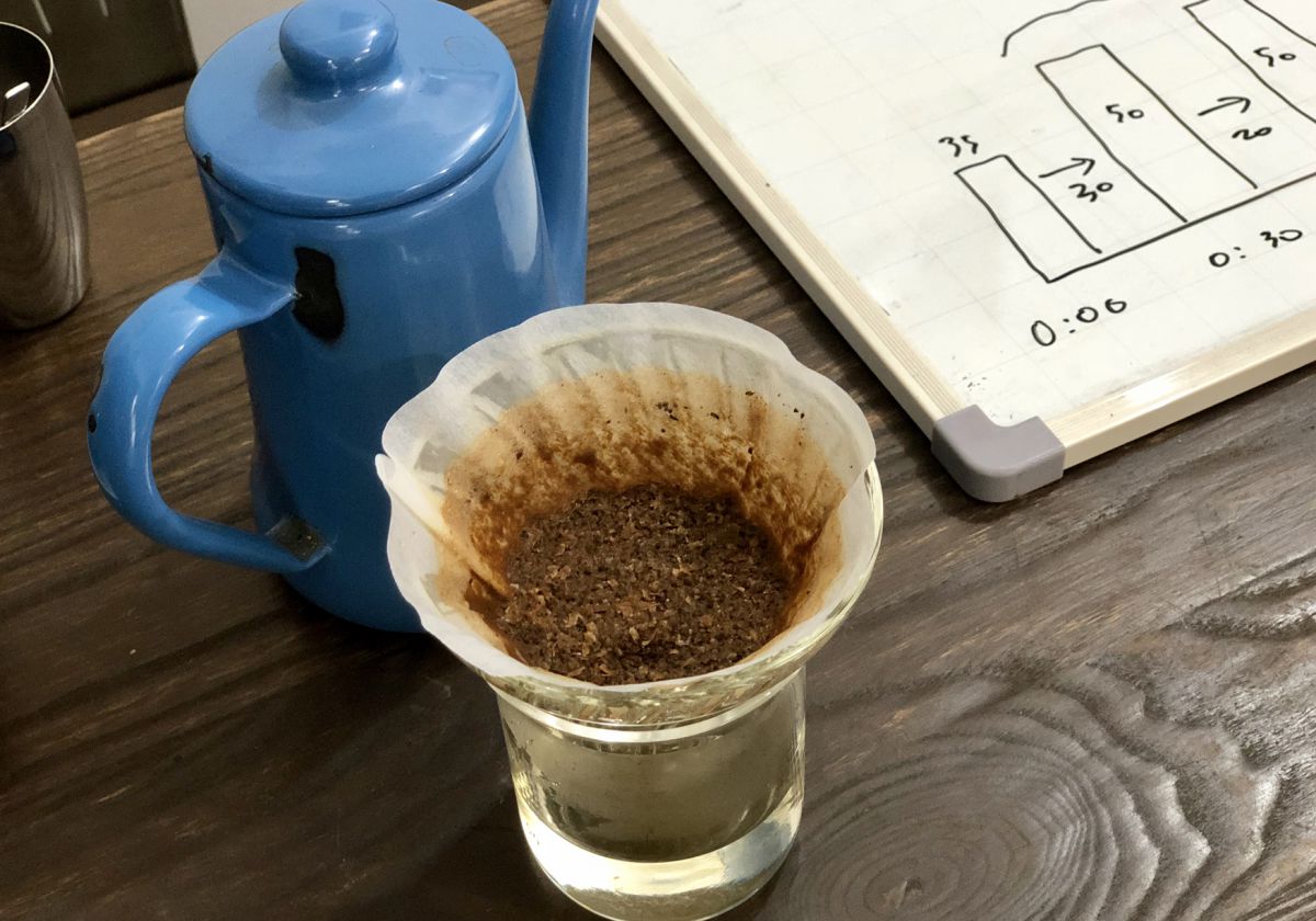 自分でドリップしたコーヒーを試飲してみると、味は充分おいしいものの、先生のコーヒーと比べて少し酸味が強く、まろやかさに欠ける印象。