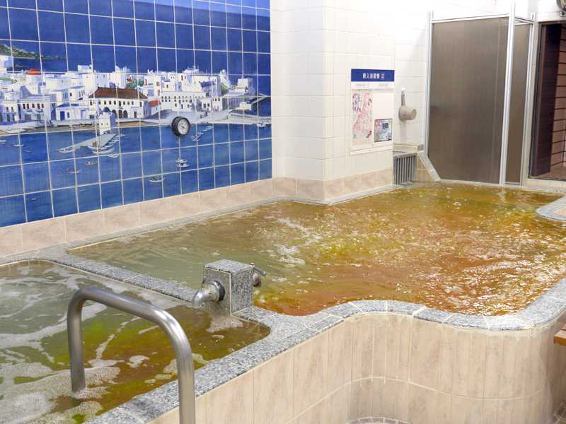訪れたこの日は、小判型の入浴剤を入れて黄金色になったお湯に、おもちゃの小判が浮かんだ「入浴両の湯」。小判尽くしのお湯に浸かると、なんとなくありがたい気分になります! お湯に含まれる炭酸ガスの効能で体の芯からポカポカに。