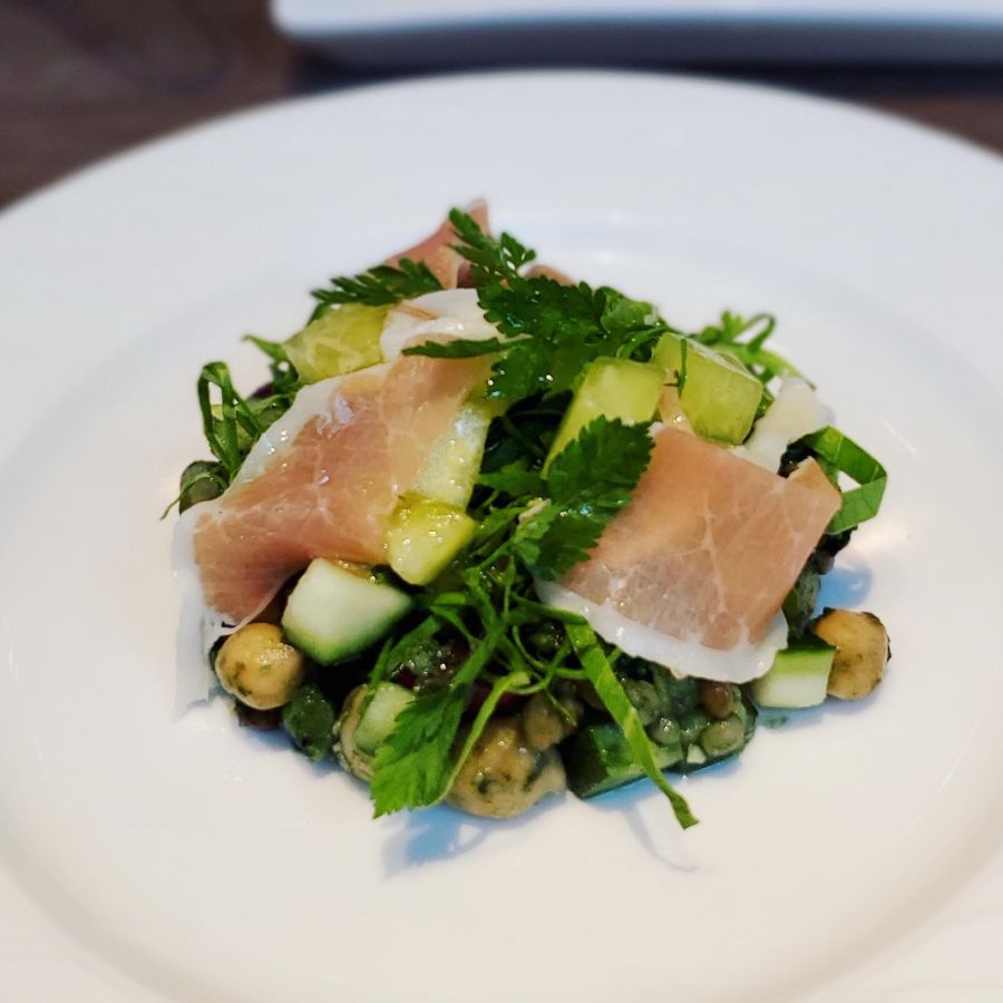 まず「生ハムメロンとお豆のサラダ」でスタート。