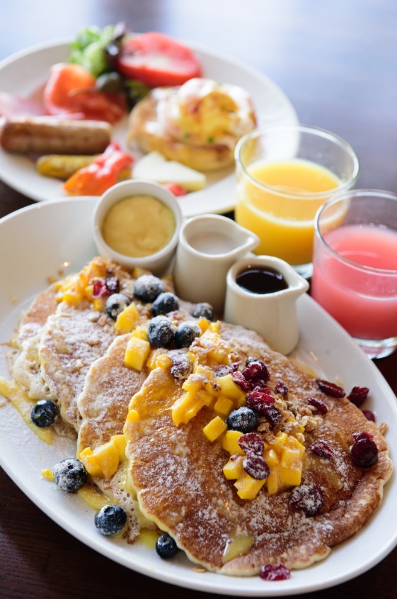 オープンは朝食のみという限定レストラン。和洋中の50種以上の料理が並ぶブッフェ$34のほか、オリジナルのバター・ミルク・パンケーキのトリオ$20や、和朝食$28、フルーツ・プレート$20などのアラカルトもあります。