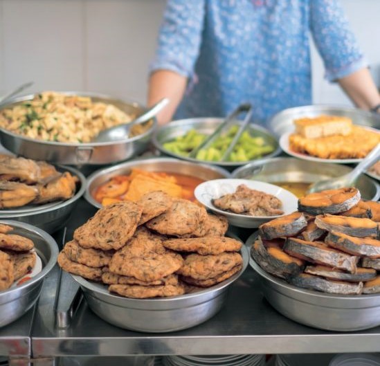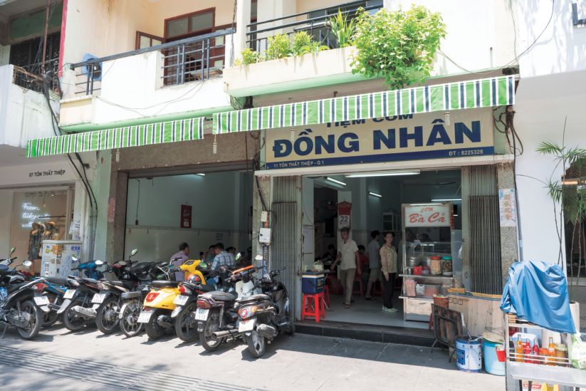 「コム・バー・カー」の愛称でも親しまれる、創業60年を超える人気の定食店「ドン・ニャン」。作り置きのおかずを常時20~30種揃えていて、スープも数種から選べます。ランチタイムには付近のオフィスに勤める人たちで満員&相席必至!しかし回転が速いので、少し待ってでもトライしたいお店です。
