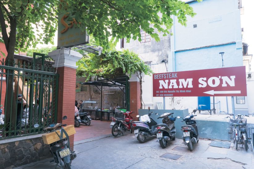 朝食としても人気のベトナム版ステーキの名店「ナム・ソン」。店全体に香ばしい匂いが立ち込め、食欲がそそられます。牛をかたどった鉄板はレトロ可愛く、ステーキは調理法だけでなく、ソースの配合にいたるまで門外不出なのだとか。メインを頼むと、サラダとバゲットは無料でついてきます♪