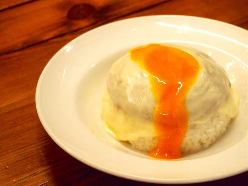 最初にてっぺんの黄身を崩して、スパイスの効いたキーマカレーと、濃厚なチーズ、黄身を一緒に食べるのがおすすめの食べ方。