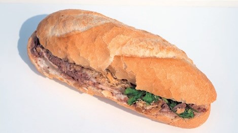 定番やオリジナルなど9種類のバイン・ミーが楽しめる中心街の一軒「タオ・ヴィ」。少し甘めの自家製ソースを絡めた牛焼肉のバイン・ミーなどもあります。
