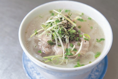 大きな豚足が入ったシンプルな米麺、バイン・カン・ヨー・ヘオ(5万5000VND)。旨みたっぷりの軟らかな豚足に、豪快にかぶりつきましょ♪