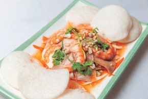 メコンデルタの街・カントーで長年バイン・セオを作り続けてきた有名料理人、シエムおばあさんのレシピを受け継ぐ専門店「バイン・セオ・ムオイ・シエム」。極薄に仕上げられたパリパリの生地が自慢で、材料である米粉やココナッツジュースは自家製、油の使用も少なめでヘルシーです。
