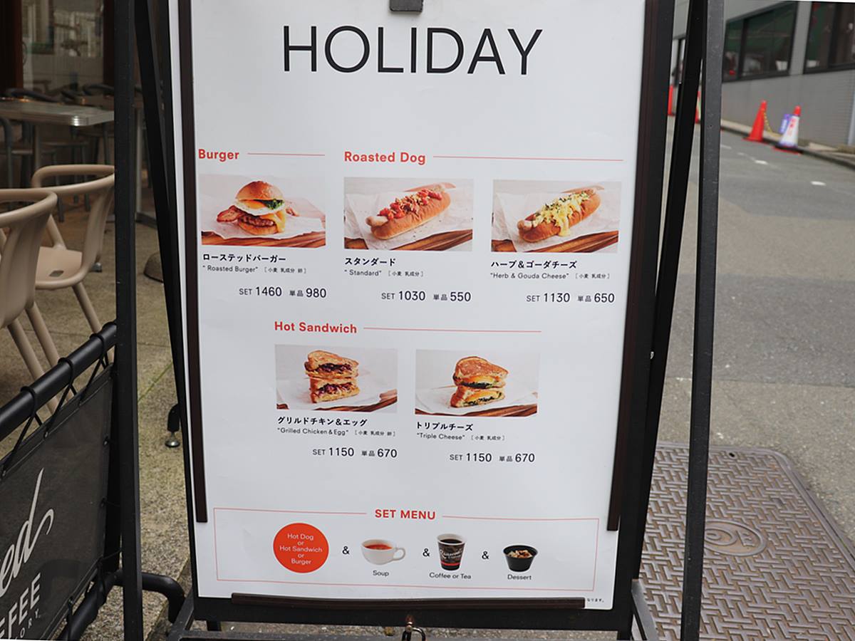 写真は休日メニューですが、ハンバーガーやホットドックなどがありますよ。