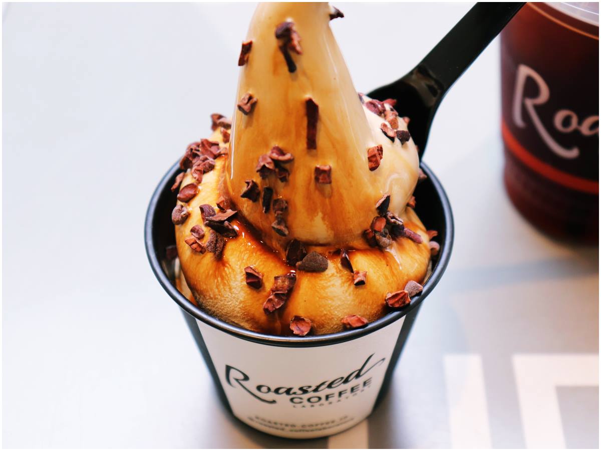 渋谷発"今"を編集するコーヒーショップ「roasted_coffeelaboratory」。これからの季節におすすめなのは、アイスコーヒーとエスプレッソを入れ込んで作ったソフトクリーム。濃厚なミルクソフトクリームで、シャリ少しシャリしている食感もあり、自家焙煎の珈琲の風味が感じられます。ゆったり過ごせるテラス席で楽しめ、暑い季節にぴったりです。