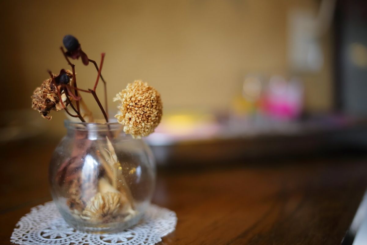 ところどころに飾られたドライフラワーがいいアクセントに。