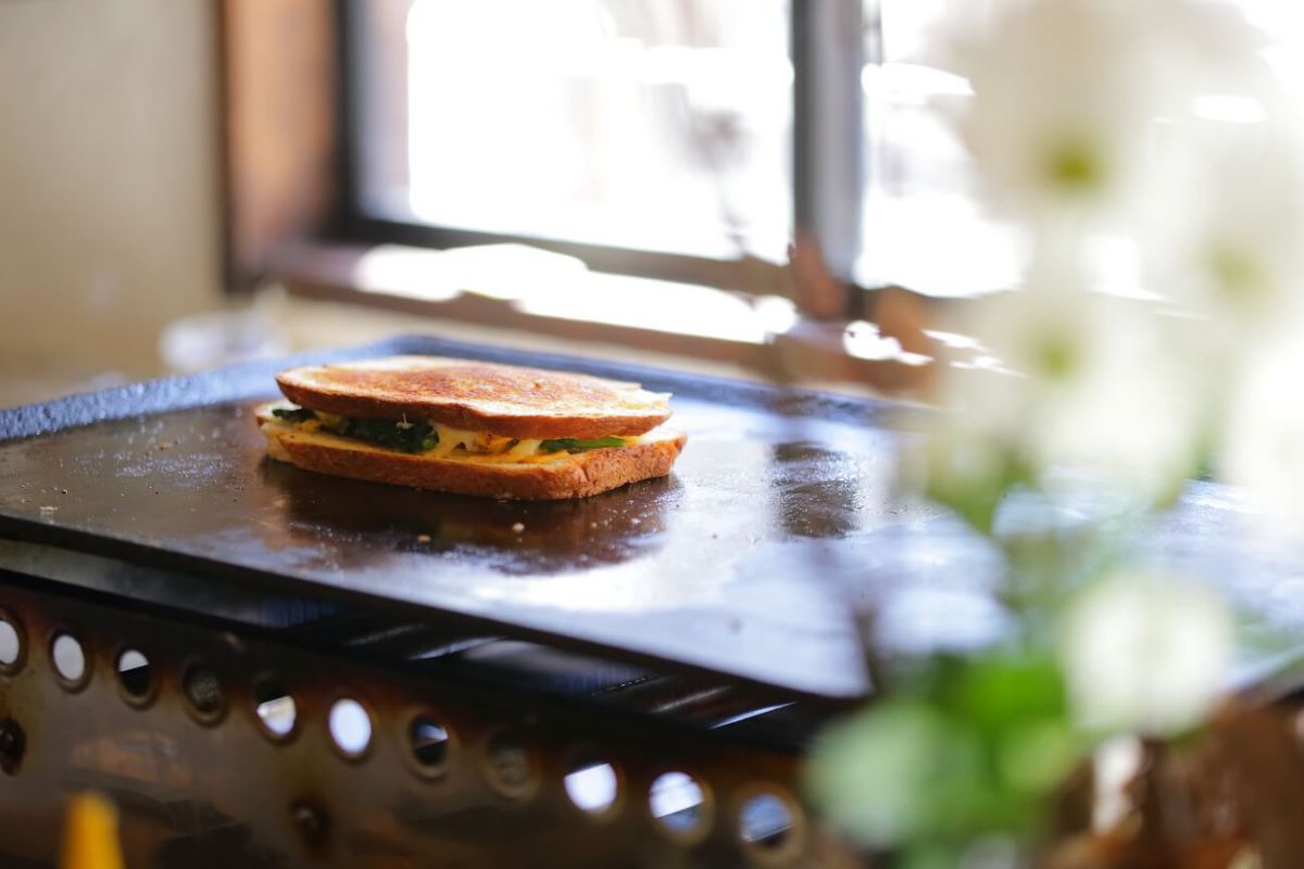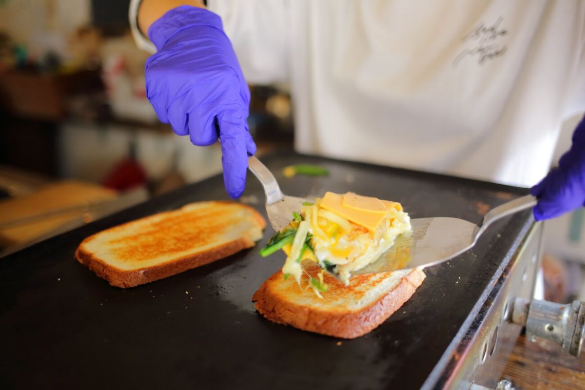 2020年2月からはホットサンドもスタートしました。本格的なガス鉄板を使って、目の前でちゃちゃっと作ってくれます。