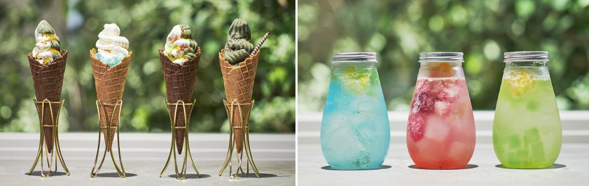 10階の水族館エントランスに併設する「CAFE CRAM(カフェ クラム)」では、カワスイの生きものや展示水槽をモチーフにした4種類のカワスイ限定オリジナルソフトクリームが登場。