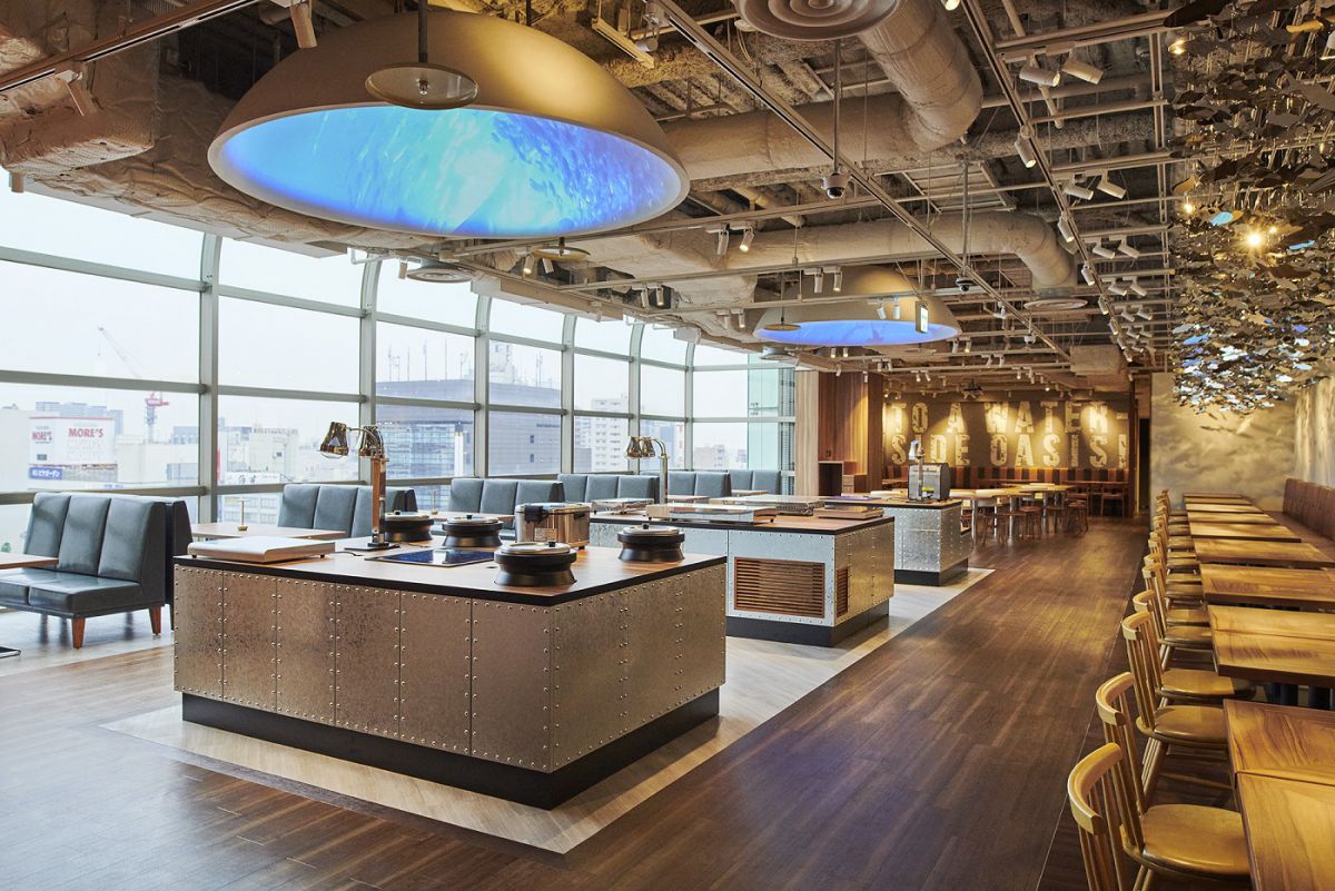 「川崎ルフロン」最上階の眺望を楽しめるビュッフェレストラン「AOW(エーオーダブリュー)」は、カワスイに集まる生きものたちの故郷で愛される世界各国の料理を提供。