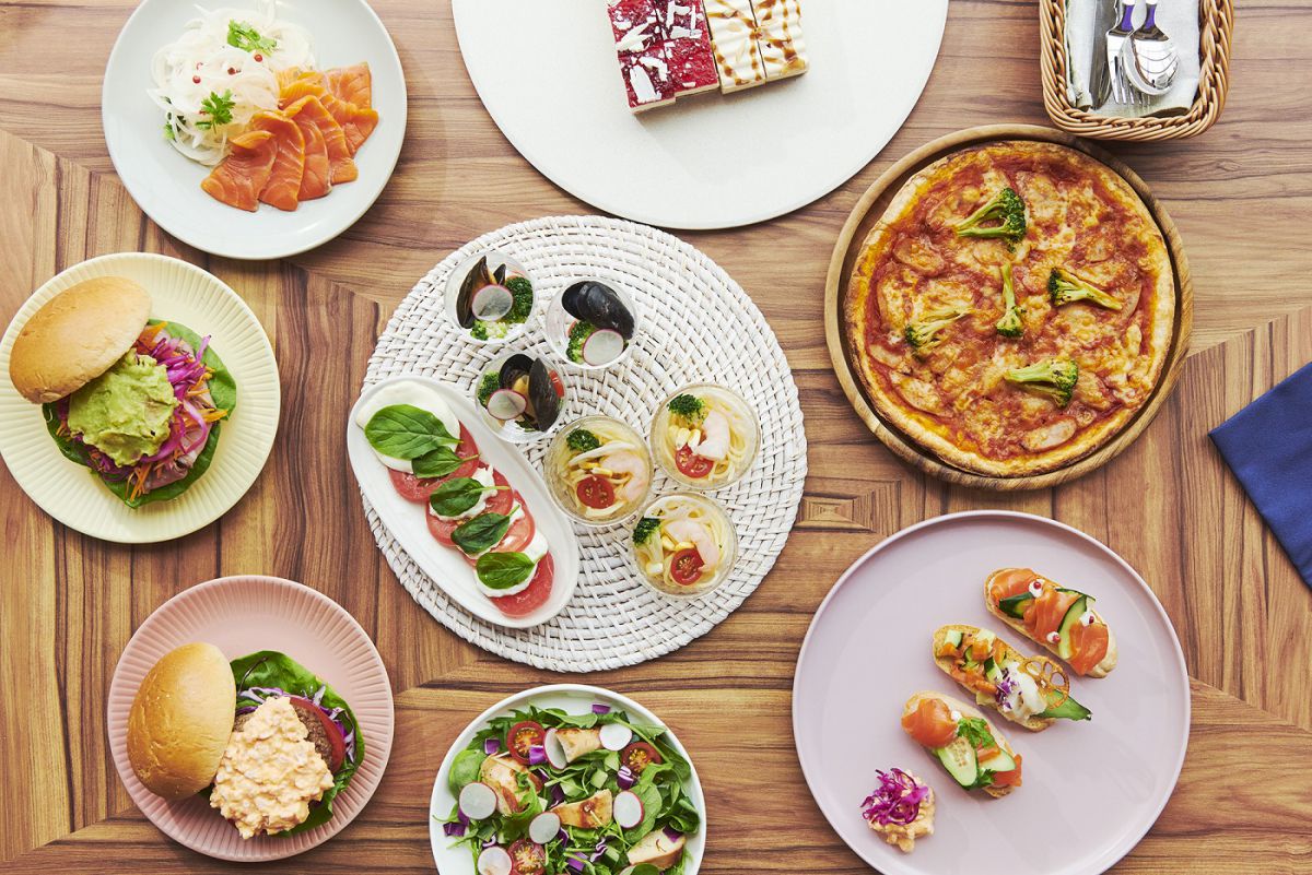 ビュッフェでは、プラントベース(植物由来)の食材にこだわったミニディッシュ、パテ・バンズ・具材・ソースを自分好みに選び、オリジナルのハンバーガー「カスタムバーガー」作りを楽しんでみましょう。