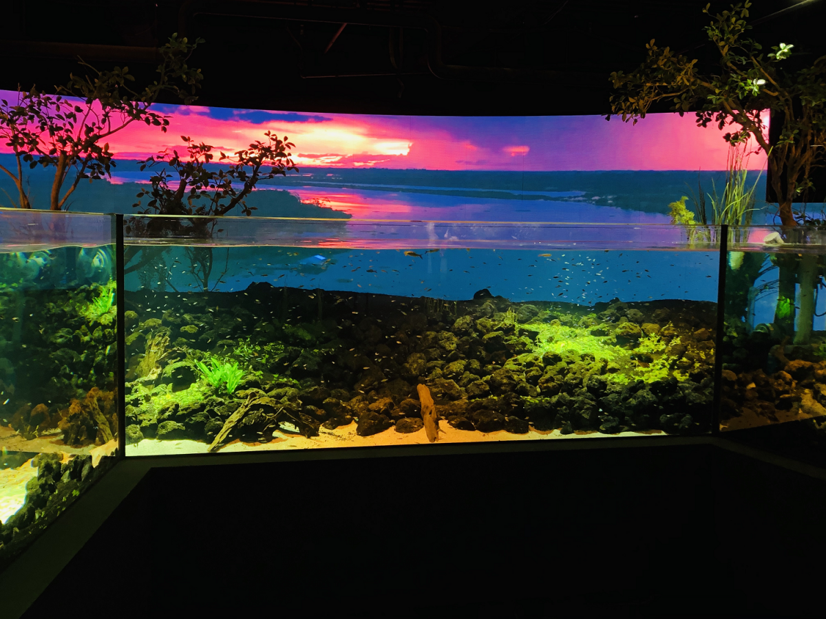 水中カメラ映像をAIがリアルタイムで解析し、水槽内の生きものの種名と解説を大型のディスプレイやタッチスクリーンに自動で表示する次世代の展示システムを世界で初めて導入。