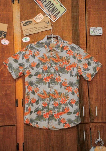 ハワイに来ると、つい買いたくなるアロハシャツ。こちらのアロハは、大胆な花柄と色合いがおしゃれです。$48。