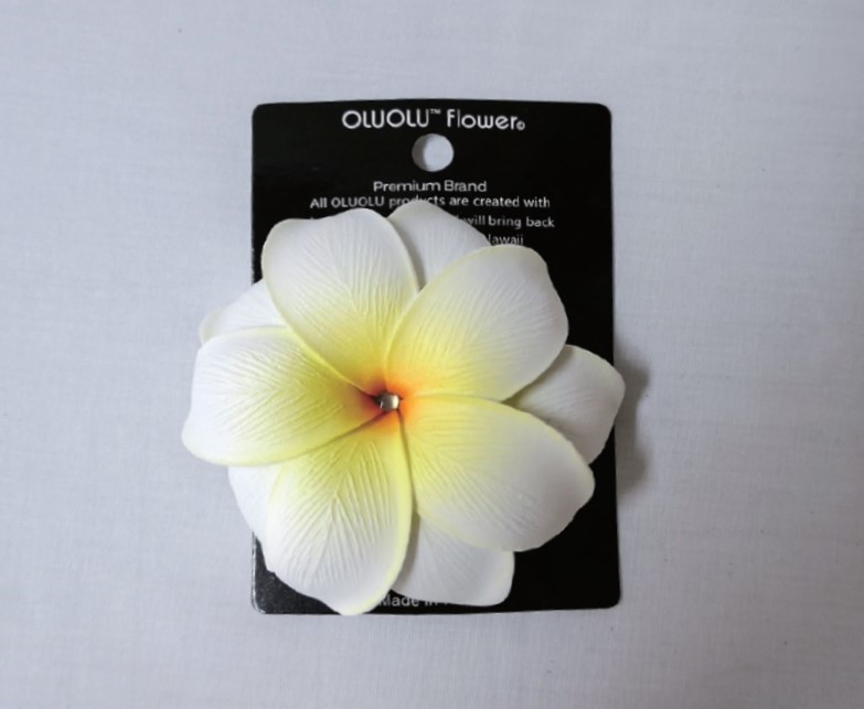 南国コーディネートにぴったり!耳元などに付けると華やかさがアップする、プルメリアのクリップは$6.99。