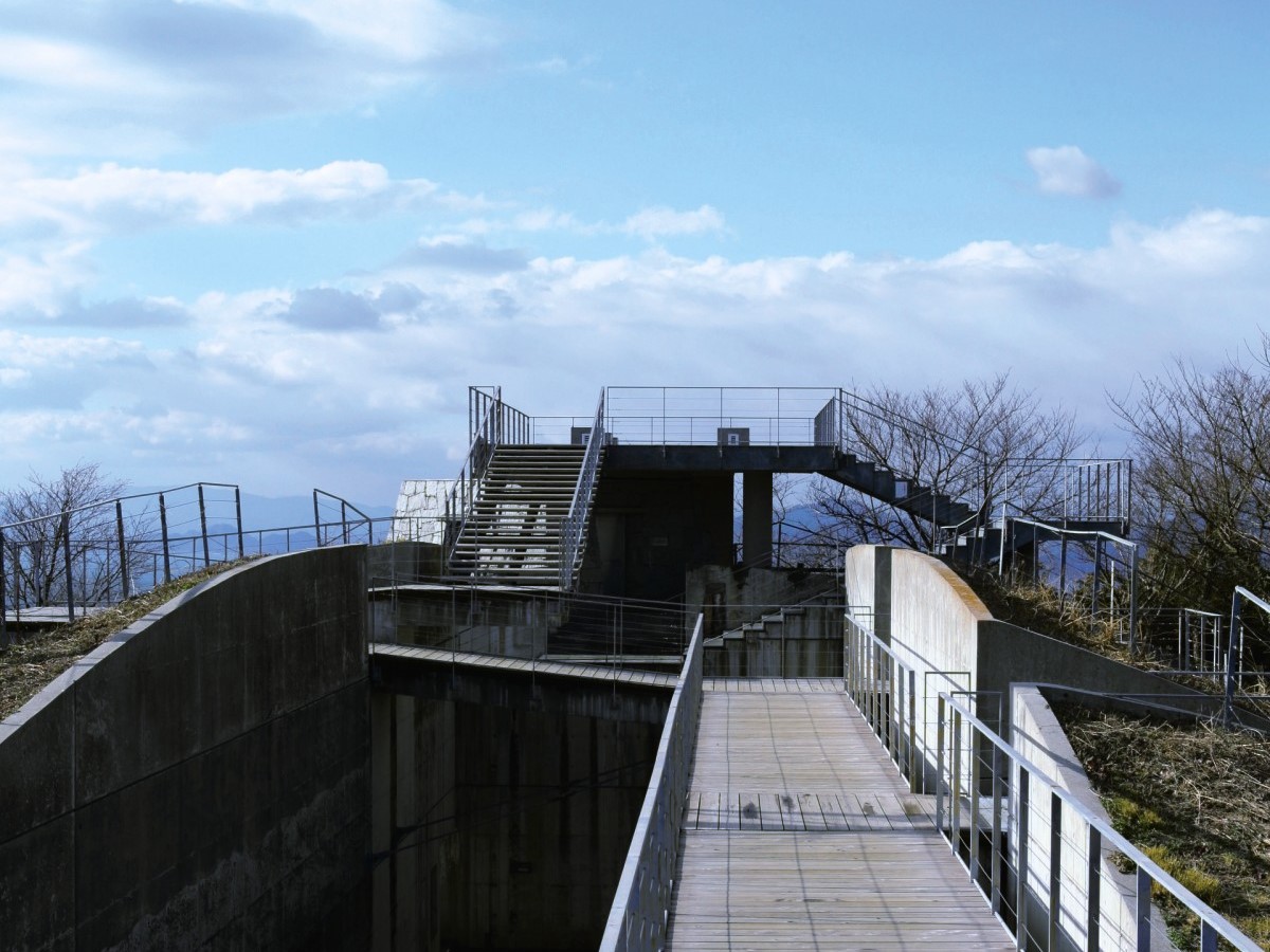 近未来的な展望台は建築家・隈研吾(くまけんご)氏の設計によるもの。晴れた日には西日本最高峰の石鎚山まで見え、夕日の時間はロマンチックなスポットになるのだとか。瀬戸内海国立公園の指定地でもあります!