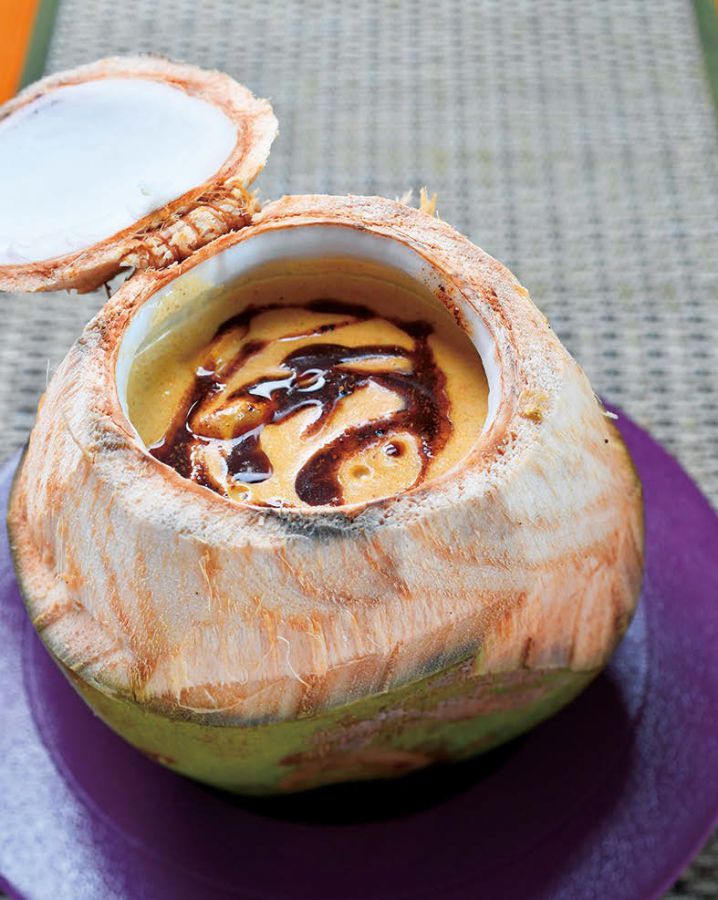 北インドの、主にパンジャーブとベンガル地方の料理がそろうお店「マスタード」。スパイスはなんとすべてオリジナル・ブレンドで自然由来だそうです!名物は、ココナッツの器を使ったココナッツ・カレー(S$19.90)。ココナッツの白い果肉を削ぎ取りながら食べるのがおすすめです!