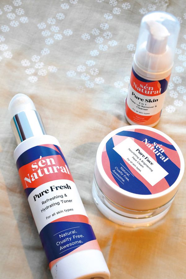 写真左下は全ての肌に使える化粧水、ピュア・フレッシュ(S$38)。アロエやグレープフルーツのエキスで保湿効果があります。右手前のピュア・フェイス(S$50)はカメリアの花やリンゴのエキスなどが明るい肌に導いてくれるフェイス・クリームで、右奥のピュア・スキン(S$18)は、メイク落としと洗顔がこれ1つで完了する優れものです。