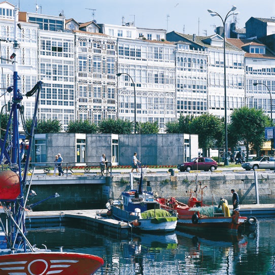 大西洋に面した開放的な港湾都市ア・コルーニャ。ガラス張りのバルコニーには、太陽の光が降り注ぎます。
