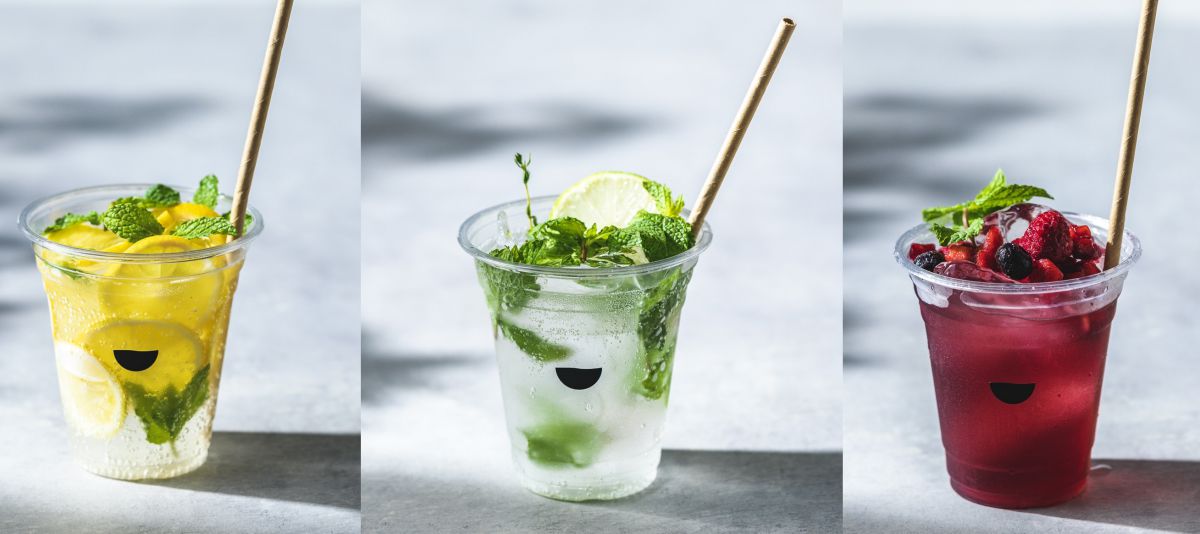 スパイスカレーとピッタリなのが、フレッシュレモンと有機ハーブの自然な味わいを楽しむ爽やかな「Michiruのレモンスカッシュ」490円。