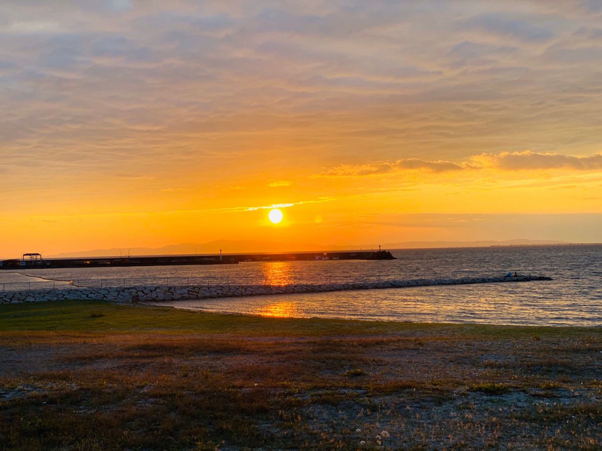 日が暮れてきたら、空と海が夕陽で染まります。ここは「日本の夕陽100選」に選定された美しい夕陽の名所なのです。