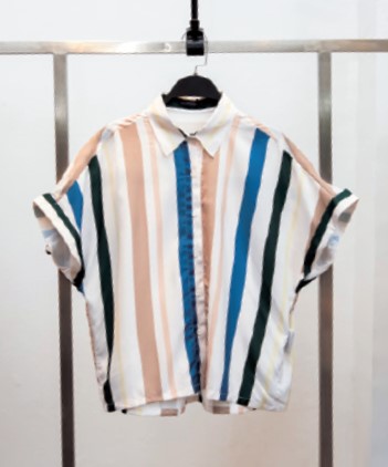 オンでもオフでも活躍しそうなストライプのブラウスは43万VND。
