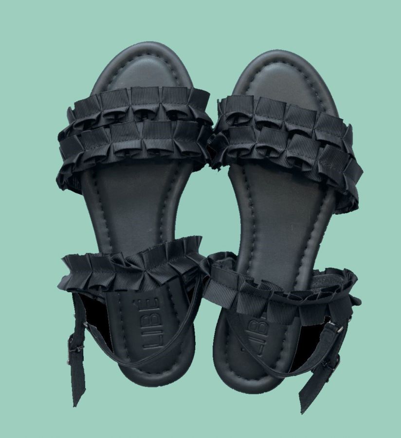 シンプルな中に遊び心たっぷり。フリルがモチーフのサンダル43万VND。