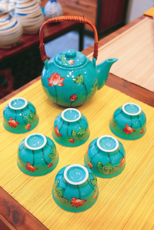 オリジナル性の高い一点もののアイテムが揃う陶器店「ティー・スノー・ブティック」。バッチャンの陶器職人が古来の製法で作り、手描きで絵付けを行った実用的な作品のほか、北欧やフランス陶器の形や色合いを意識し、現代風にアレンジしたシンプルなオリジナルデザインも人気です。