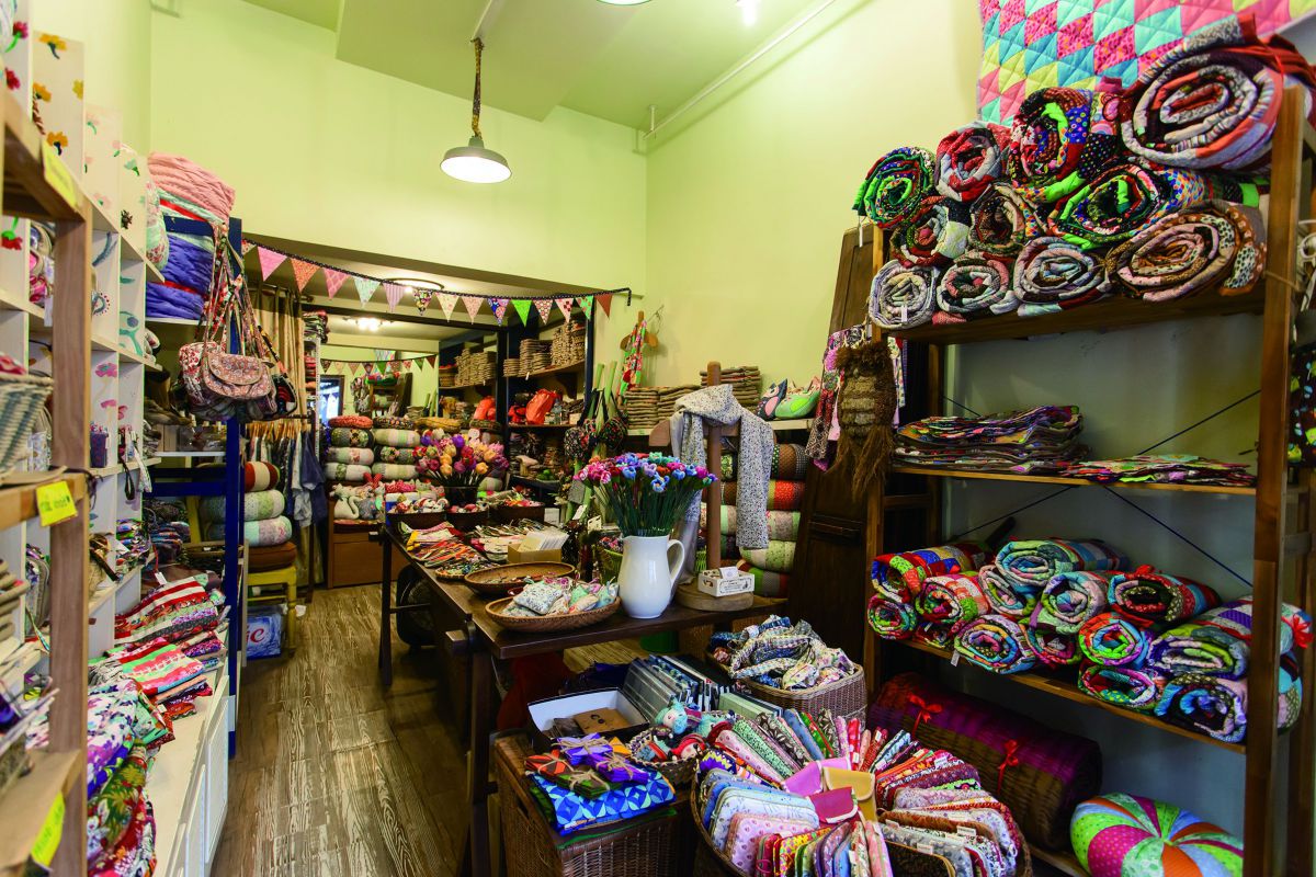 「フローラ」では、フランスで4年間デザインを学んだオーナーが手掛ける布小物を販売しています。キルティングやパッチワークを多用した布製品はどれも、花柄模様などロマンチックなイメージ。
