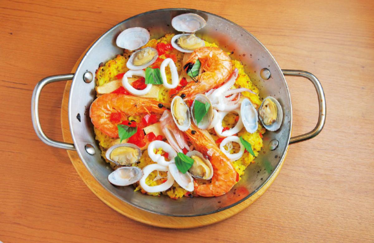 ピザ以外にも、前菜やメインも充実しています。写真は、エビやイカなどが入った、シーフードライス(S$18.90~)。