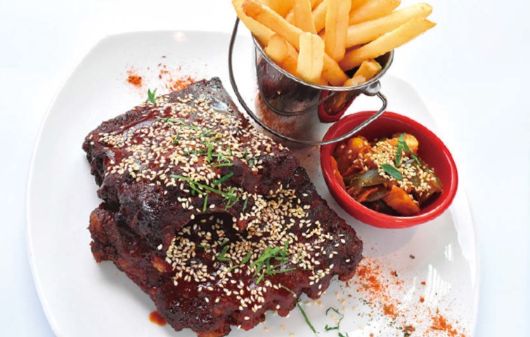 バーベキュー・ポーク・リブ(S$25)はボリュームが満点!なので、シェアにぴったりのお料理です。