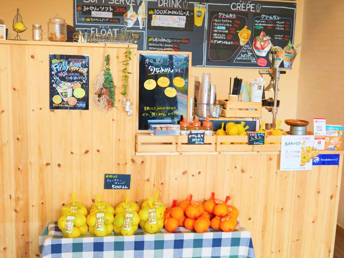 “みかん専門店”の名が示す通り、お店の中も外も、展開するメニューの数々もどこをとってもミカン一色。
