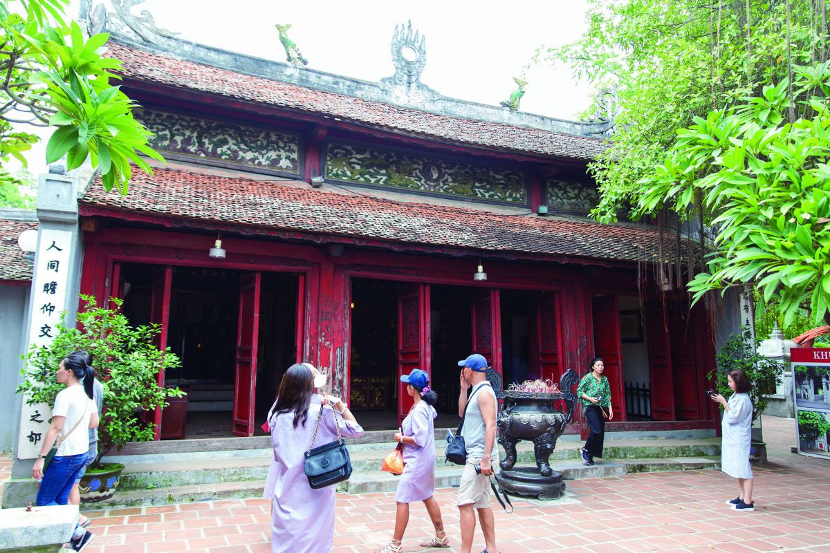ホアンキエム湖にある小さな島にある寺、玉山祠(ぎょくさんじ)からお散歩スタート♪こちらのお寺に祭られているのは、文・武・医の神と13世紀に中国の元の侵略を撃退した英雄チャン・フン・ダオです。