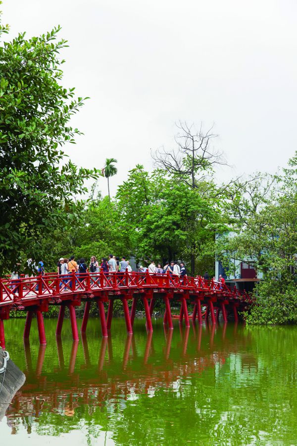 まずはホアンキエム湖の紹介から。ホアンキエム湖は、街の中心にあるハノイを象徴する湖で、紅河が氾濫してできたとされています。一日中、ハノイの人々が集う憩いの場でもあります。