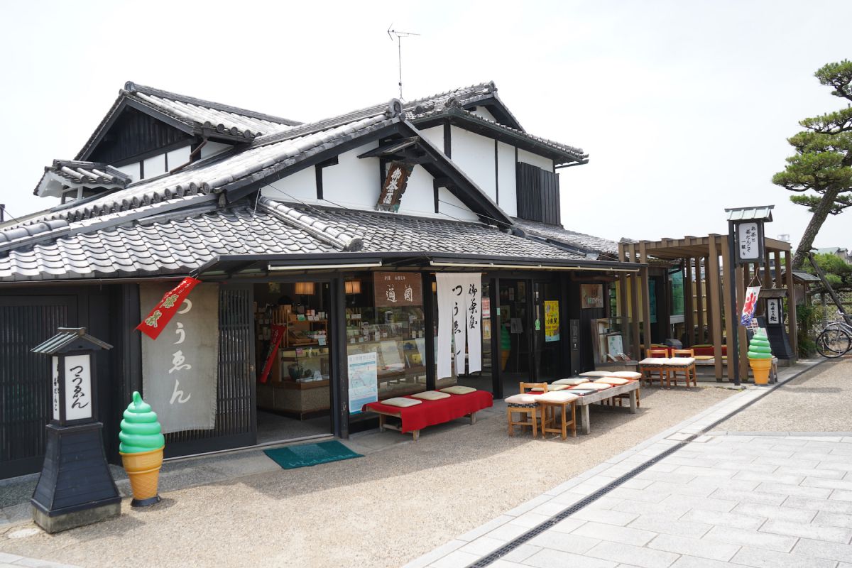 茶店「通圓」があるのは宇治橋のたもと。東に日本最古の神社建築の本殿を持つ宇治上神社、川を挟んで西に十円玉でおなじみの宇治平等院があり、どちらも徒歩10分圏内という観光名所のど真ん中です。