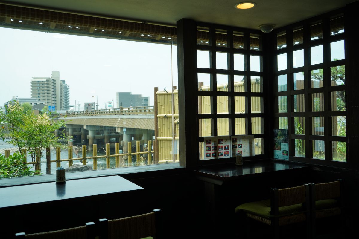 涼しい店内で、宇治橋を渡る人々の様子や流れる川を眺めつつ、一服。