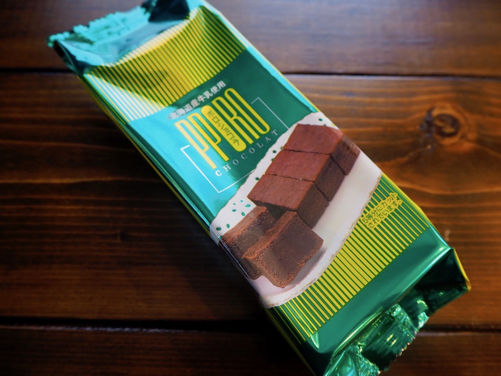 光沢のあるグリーンのパッケージが高級感漂う「ポロショコラ」(358円)。