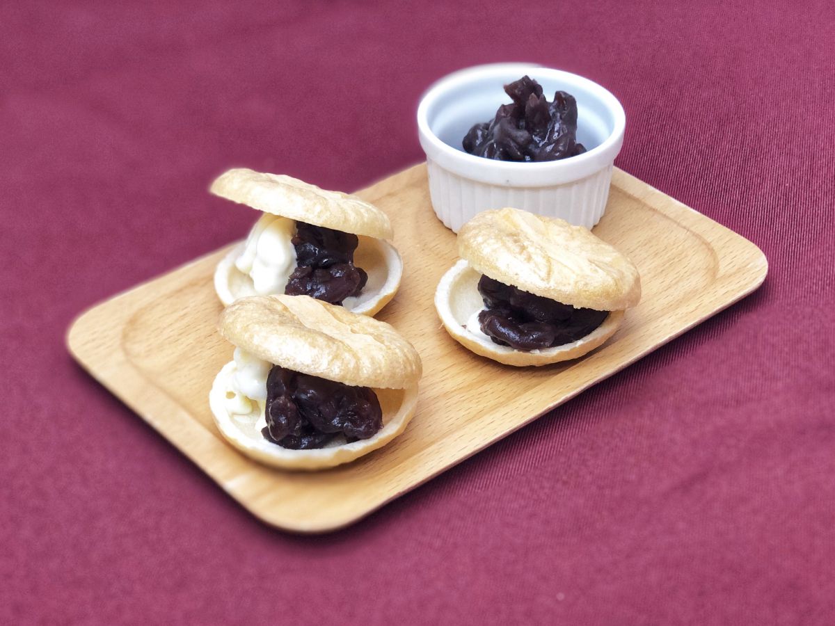 この「手作り最中」ははさみたてを食べられるから、パリパリとした皮の食感を楽しめるのが魅力!自分たちで作る楽しさもありますね。