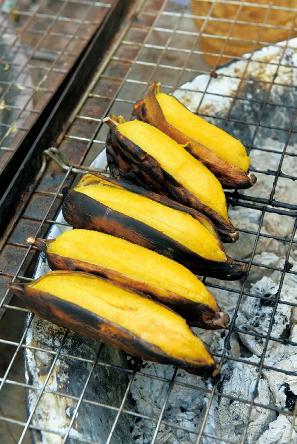 皮つきのままシンプルに炭火焼にしたバナナ、クルアイ・ピン(3本B20)は朝ごはんにぴったり!