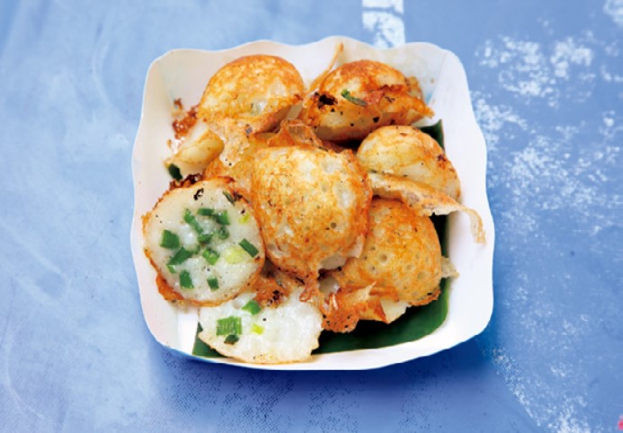 こちらはカノムクロック(B20)という、ココナッツミルクで味付けした米粉の生地を焼いた、屋台の定番スイーツです。外はパリパリ、中はモチモチなんです!
