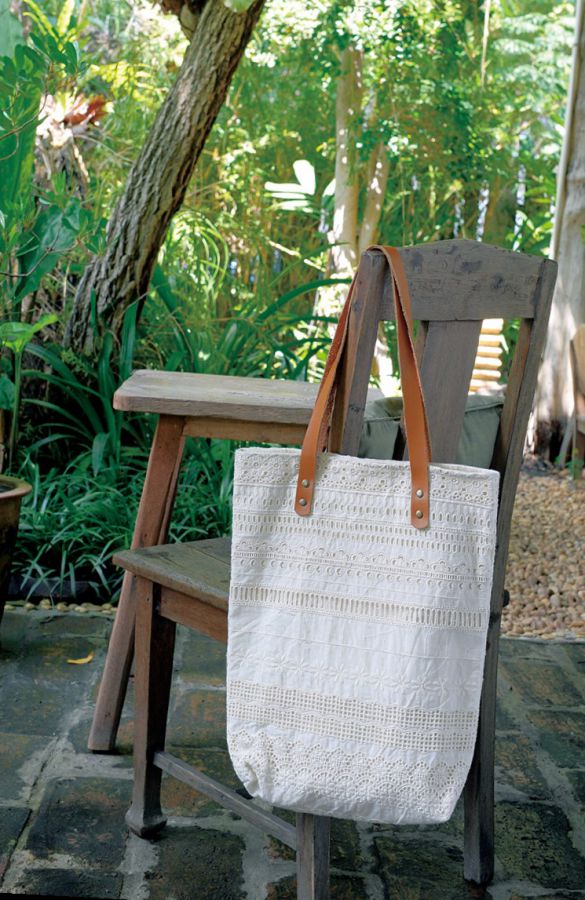 カゴバッグやセラドン焼、布小物やインテリア雑貨などかわいらしい雑貨は、すべて日本人オーナーがセレクトしたものだそう。自然素材を使ったソープやスキンケア商品もベストセラーです。写真のように、タイ中部で作られた竹製バッグ(B750~)や山岳民族の手作りシューズ(B690)などこだわりグッズもたくさんです。